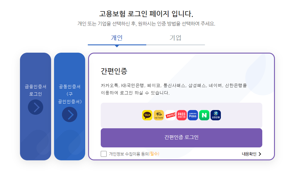1. 고용보험 홈페이지 본인인증 로그인
