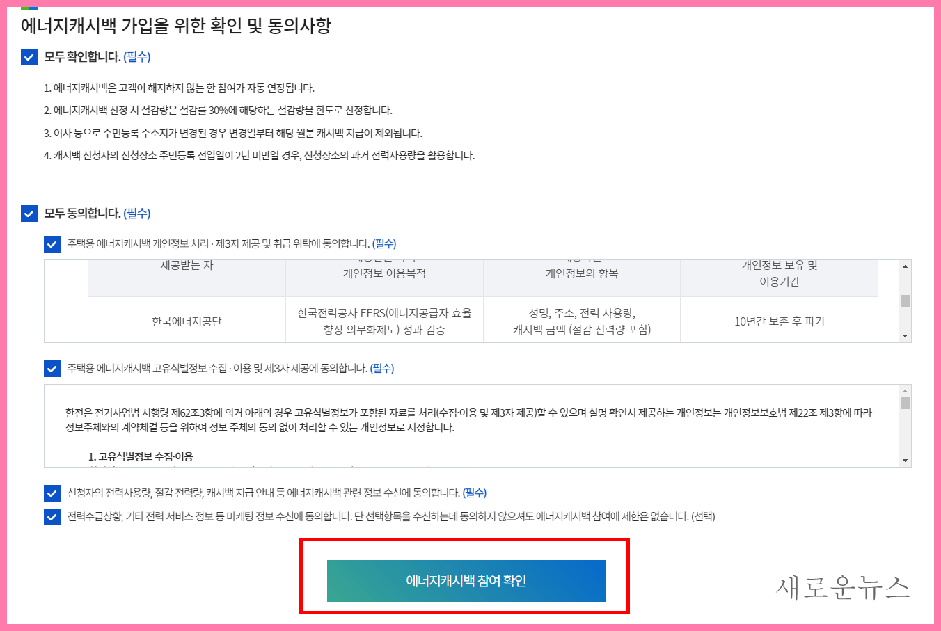 필수로 되어진 약관내용을 한번씩 읽어 보시고, 필수동의 인만큼 반드시 동의 되어야만 캐시백 신청이 가능한점 참고하시어 진행하시면 되겠습니다.