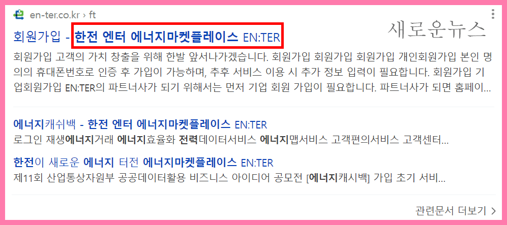 다음, 네이버, 구글 등 포털 사이트에서 한전 엔터 에너지마켓플레이스를 검색하여 한전 에너지 캐시백 신청사이트로 접속을 합니다. 만약 검색이 어려운 경우에는 한전 123에 전화를 걸어 문자로 경로 URL을 요청하여 메세지로 받아볼 수도 있습니다.